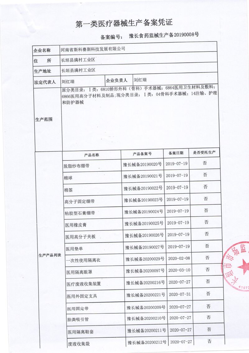 河南省斯科賽斯科技發(fā)展有限公司創(chuàng)建于 2011 年,位于“中國(guó)醫(yī)療耗材之都”- 河南省長(zhǎng)垣縣,西臨 308 省道,南靠新菏鐵路,北依長(zhǎng)濟(jì)高速,交通便捷,經(jīng)濟(jì)發(fā)達(dá),環(huán)境優(yōu)美。斯科賽斯積極進(jìn)入醫(yī)療健康和服務(wù)領(lǐng)域,秉承為用戶創(chuàng)造價(jià)值的理念,專(zhuān)注于醫(yī)用耗材解決方案的研發(fā)和運(yùn)營(yíng),并為用戶提供完善的產(chǎn)品解決方案;  斯科賽斯主要生產(chǎn)醫(yī)用麻醉系列、醫(yī)用高分子系列、醫(yī)用敷料包系列、醫(yī)用無(wú)紡布系列、醫(yī)用防護(hù)系列、醫(yī)用脫脂棉系列、生物材料制品類(lèi)等七大類(lèi)、100 多個(gè)品種、400 多個(gè)規(guī)格的產(chǎn)品。公司占地面積約 30000 平方米,建筑面積20000 平方米,擁有 10 萬(wàn)級(jí)的凈化車(chē)間總面積 10000 平方米。擁有國(guó)際先進(jìn)水平的生產(chǎn)設(shè)備和檢測(cè)儀器,技術(shù)裝備精良,檢測(cè)手段完善,為醫(yī)療行業(yè)的不斷發(fā)展進(jìn)步提供保障。公司順利通過(guò) ISO9001、ISO13485 質(zhì)量管理體系認(rèn)證。  斯科賽斯堅(jiān)持研發(fā)高科技新產(chǎn)品,力爭(zhēng)在醫(yī)療器械關(guān)鍵領(lǐng)域取得技術(shù)和研發(fā)的重大突破;立足國(guó)內(nèi)和國(guó)際兩個(gè)市場(chǎng),逐步實(shí)現(xiàn)管理理念、經(jīng)營(yíng)機(jī)制、人力資源、技術(shù)、產(chǎn)品、市場(chǎng)等全方位對(duì)接,提高企業(yè)的核心競(jìng)爭(zhēng)力;過(guò)去的歲月里,斯科賽斯砥礪前行,誠(chéng)信務(wù)實(shí),銳意進(jìn)取,不斷創(chuàng)新,用自己的睿智和辛勞,以富有責(zé)任感的使命,在探索中追求,在追求中超越,致力于成為值得信賴(lài)的醫(yī)療用品生產(chǎn)企業(yè)!在未來(lái)的日子里,斯科賽斯將一如既往豪情滿懷,信心百倍,攜手并肩,執(zhí)著追求,向更高的的目標(biāo)前進(jìn),鑄造新的輝煌!